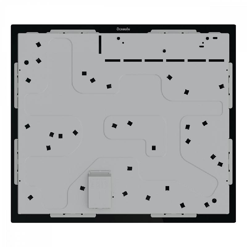 Варочная поверхность выполнена из стеклокерамики, монтируется в уровень со столешницей в вырез размерами 56х49 см. Потребляемая мощность составляет 6400 Вт. В комплекте поставляется сетевой кабель длиной 1,5 м.