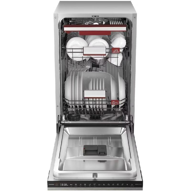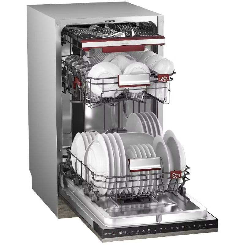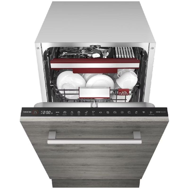 Встраиваемая посудомоечная машина Toshiba DW-10B3(B)-RU шириной 45 см вмещает до десяти комплектов посуды, которая размещается на трех уровнях. Для столовых приборов и мелкой кухонной утвари предусмотрен отдельный лоток.