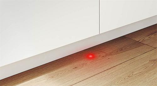 Прибор оборудован закрытой кнопочной панелью с дисплеем, на котором отображаются индикаторы наличия соли и ополаскивателя, а также время до окончания программы. Последнее дополнительно дублируется лучом на полу. При синхронизации со смартфоном старт машины можно активировать удаленно через приложение. Таймер отложенного старта устанавливается сроком до 24 часов.