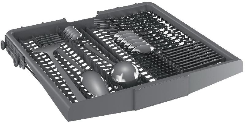 Благодаря конструкции корзины для столовых приборов, которая легко скользит между решетками нижней корзины обеспечивается гибкость при размещении, а для больших кастрюль и сковородок остается больше места.