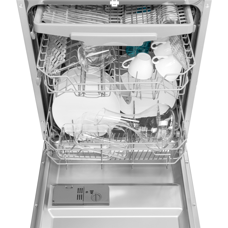 Обладает достаточной вместительностью для 14 комплектов. Благодаря этому, вы сможете одновременно помыть большое количество посуды, включая тарелки, стаканы, столовые приборы, кастрюли и другие предметы. Это экономит ваше время и упрощает процесс мытья.