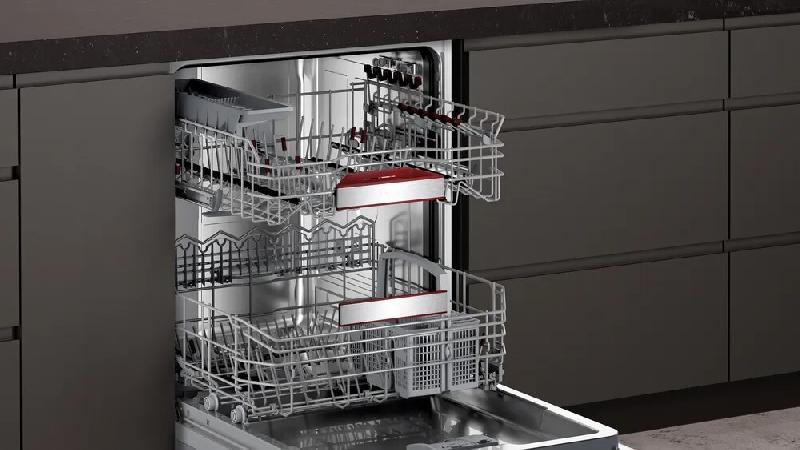 Встраиваемая посудомоечная машина Neff S197EB802E отличается лаконичным дизайном, где чёрная сенсорная панель управления прячется в кухонном гарнитуре. Такой подход придаёт интерьеру целостный вид. Для повседневного удобства дверца оснащена механизмом плавного открывания DoorOpenAssist. Внутренняя камера и резервуар изготовлены из прочной нержавейки, не впитывающей запахи, а корпус — из термостойкого пластика.