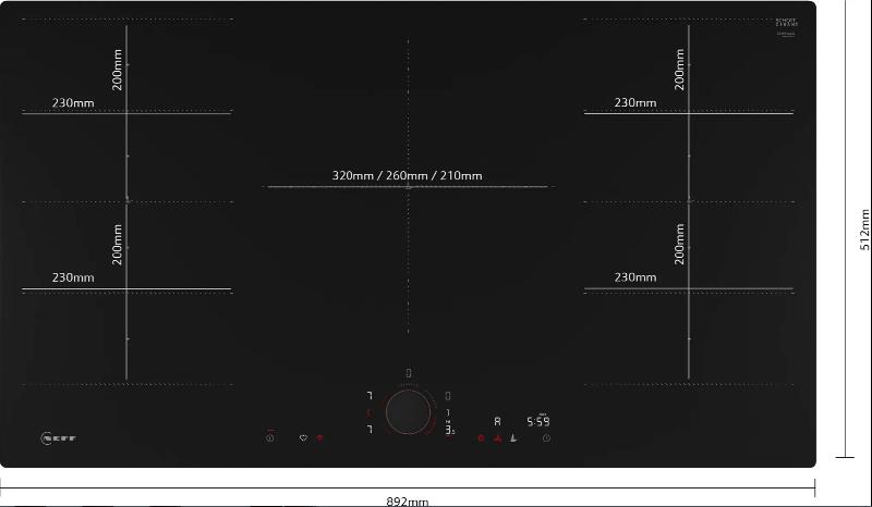 Индукционная варочная панель Neff T69PYV4C0 привносит на кухню лаконичный дизайн и передовые технологии. Ее главная визуальная черта — абсолютно гладкая поверхность из стеклокерамики, лишенная каких-либо рамок. Такой бесшовный вид позволяет прибору буквально сливаться со столешницей, создавая ощущение единой цельной плоскости.