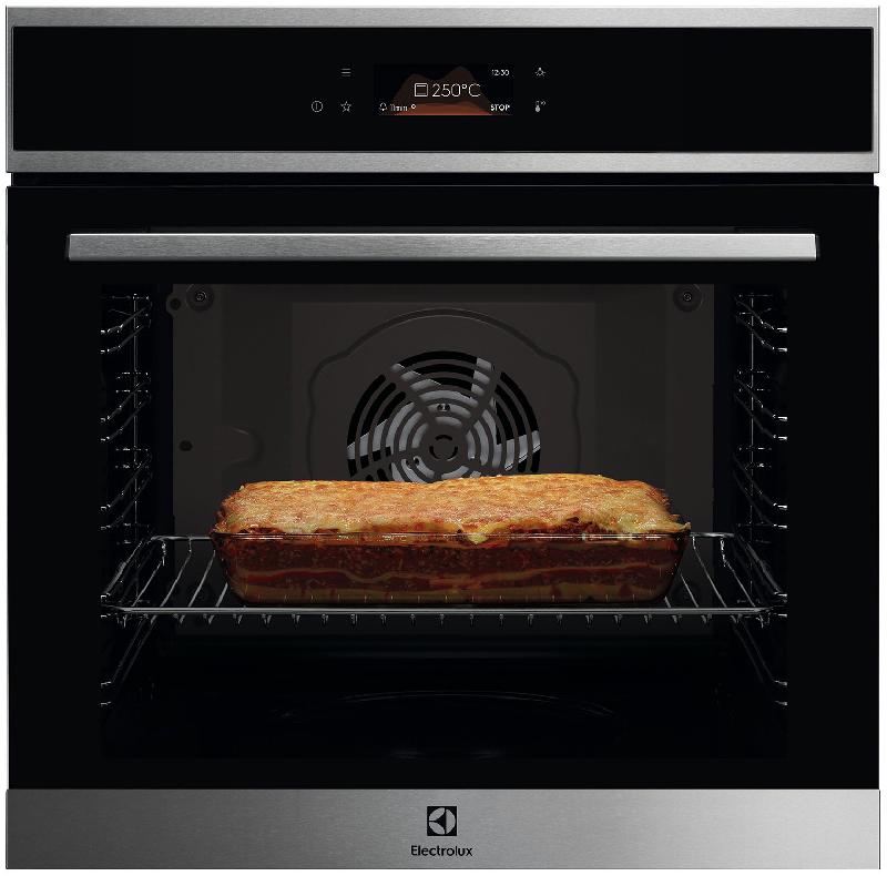 Духовой шкаф Electrolux LOE8F38X изготовлен в элегантном корпусе из нержавеющей стали подчёркивает современный минимализм и подчёркивает статус кухни, одновременно обеспечивая практичность в уходе; аккуратная передняя панель со встроенным дисплеем и сенсорными переключателями выглядит сдержанно и обеспечивает интуитивное управление. Серия 700 сочетает высокий уровень отделки и инженерных решений, позволяя сочетать приборы в едином стиле, а тонкая рамка и матовая текстура металла минимизируют видимость отпечатков и мелких загрязнений. Трёхслойная дверца с тремя стеклами поддерживает эстетику и безопасность, а механизм плавного закрывания делает эксплуатацию комфортной и безшумной.