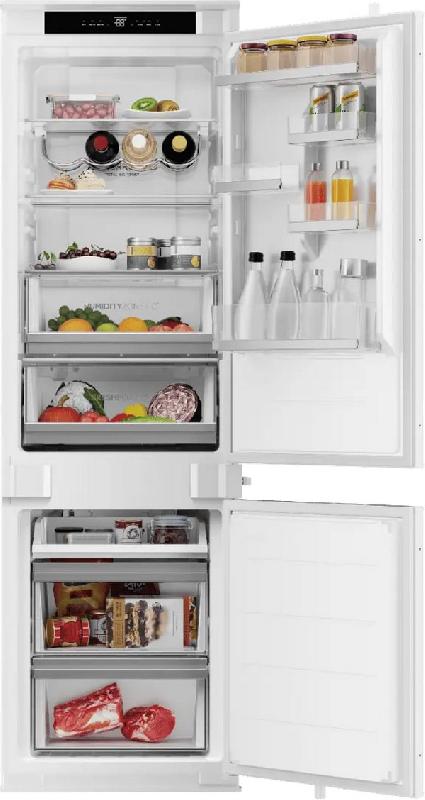 Встраиваемый холодильник HAIER HBCN5177U1 превосходно сохранит продукты, а также расширит возможность для экспериментов с дизайном кухни. В холодильнике полки из закалённого стекла с изменяемой высотой установки, в нижней части холодильного отделения —контейнер Humidity zone для фруктов и овощей. Металлическая полка для бутылок пригодится для охлаждения напитков, а также позволяет моделировать пространство в холодильнике, исходя из конкретных задач хранения. Надёжный современный компрессор обеспечивает низкое энергопотребление — класс энергоэффективности A+ и низкий уровень шума 35 дБ.