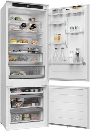 Встраиваемый холодильник HAIER HBCN7190U1 очень вместительный благодаря высоте 193,5 см и ширине 70 см. В холодильнике полки из закалённого стекла с изменяемой высотой установки, в нижней части холодильного отделения — выдвижные контейнеры для фруктов и овощей, а также специальная зона Humidity zone для идеального сохранения свежести фруктов и овощей. Надёжный инверторный компрессор обеспечивает низкое энергопотребление — класс энергоэффективности А+ и низкий уровень шума 33 дБ.