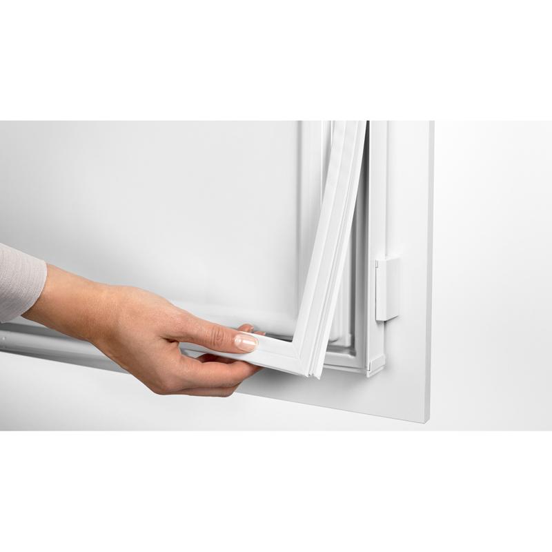 Уплотнитель холодильника легко снимается, что позволяет по мере износа заменить его. Четыре регулируемые ножки помогут нейтрализовать небольшие неровности пола и установить прибор устойчиво.