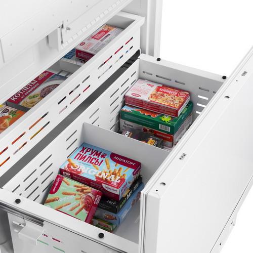 Верхняя полка ящика предназначена для быстрой заморозки продуктов и сохранения их формы - например, ягод