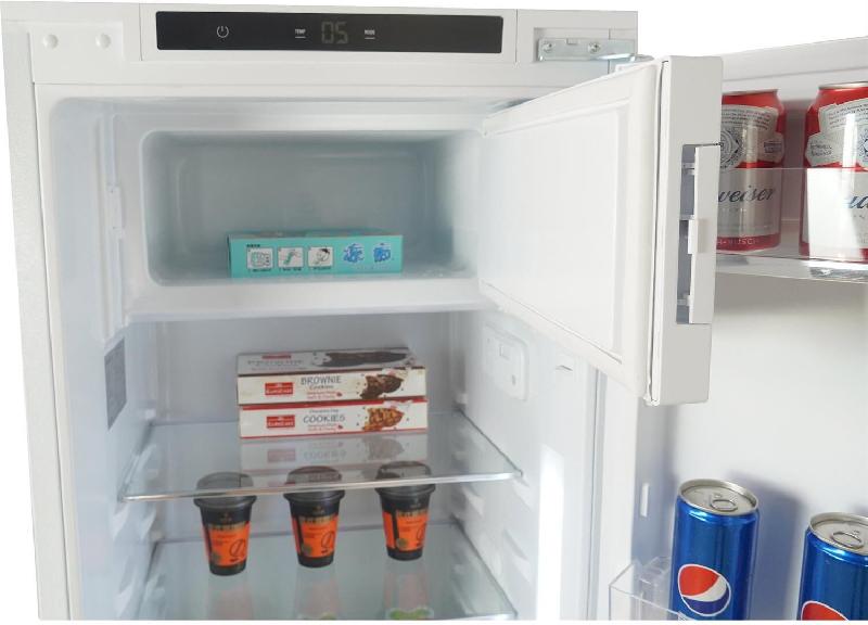 Габариты ВхШхГ, см: 122х55,5х54,5; Объём: 180л; Холодильник 122 см, однодверный с небольшой морозильной камерой, ручной разморозкой, сенсорное управлением, перенавешиваемой дверью, серебристой отделкой на полке двери и стеклянной полке, скользящими направляющими, 3 стеклянными полками, 3 дверными полками.