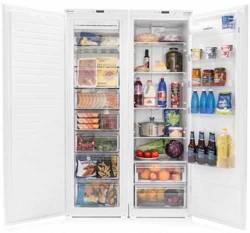 Если у Вас просторная кухня, то особого внимания заслуживает встраиваемая Side- by-Side комбинация холодильника RBI303EZ и морозильника FNBI303E.