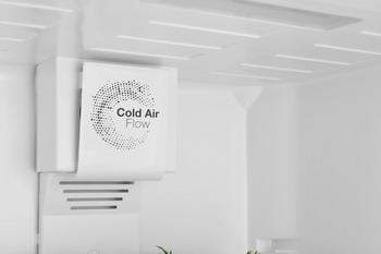 Cold air Flow - многопоточная система со специальными отверстиями-воздуховодами по всей высоте камеры. Она равномерно распределяет температуру и влажность во всем пространстве холодильника, что создает оптимальные условия для хранения продуктов. Ваши продукты сохранят витамины и полезные вещества дольше!