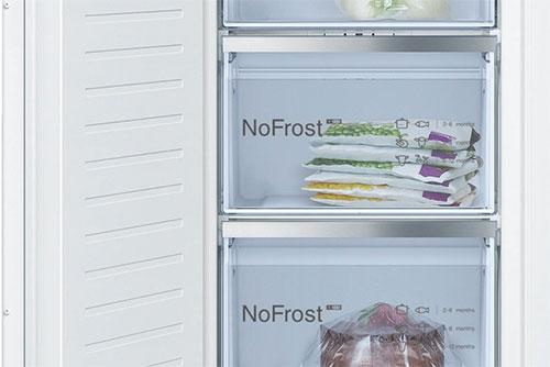 Встраиваемая морозильная камера Bosch GIN81AEF0U оснащен системой VarioZone вы можете регулировать внутренне пространство полок, как вам удобно. Имеется функция суперзаморозки, устройство само определяет уровень холода и выставляет значения. Ящик BigBox предназначен для хранения крупногабаритных продуктов тортов или пицца.