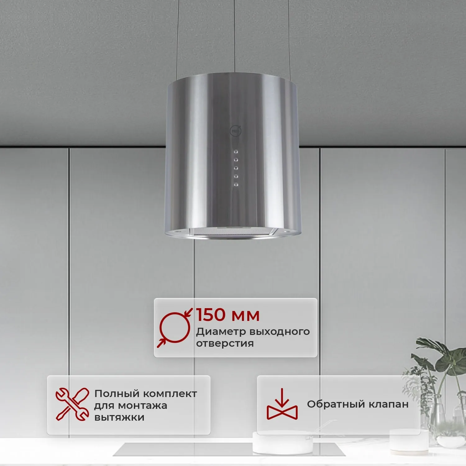 Вытяжка каминная MBS Petunia 135 Island Inox нержавеющая сталь управление: кнопочное (1 мотор)