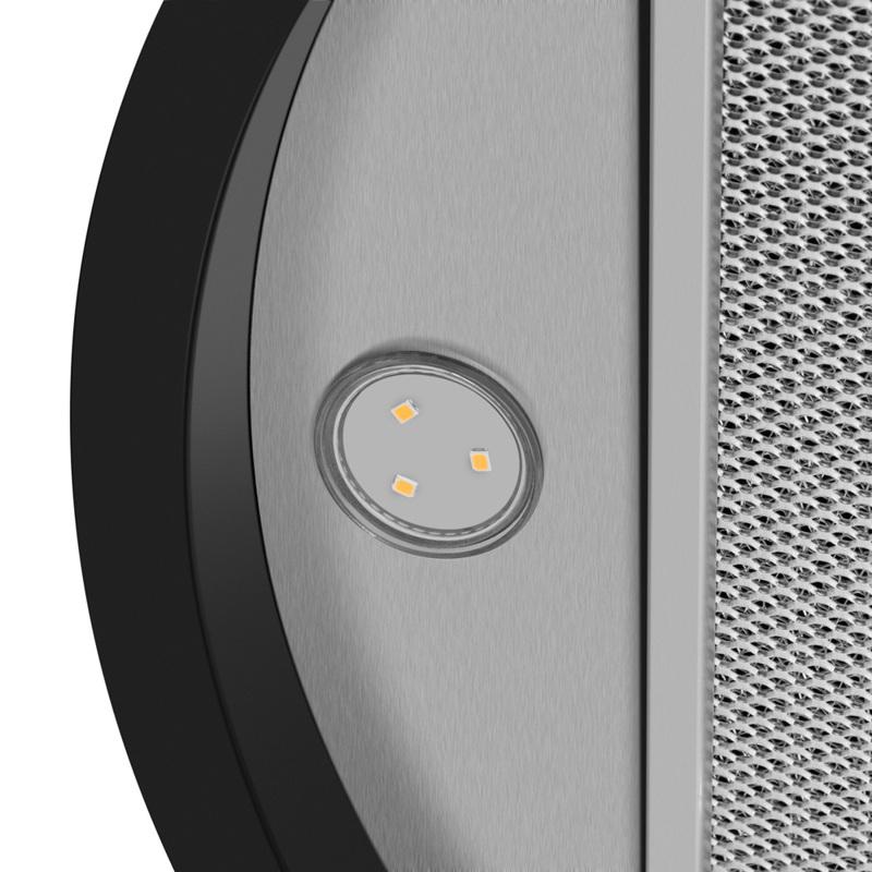 Корпус вытяжки изготовлен из нержавеющей стали INOX, которая отличается высокой прочностью, долговечностью, устойчивостью к коррозии и лёгкостью в уходе.
