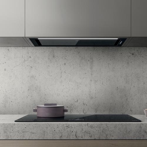 Встраиваемая вытяжка с минимальным визуальным эффектом. Мультиподключение гарантирует легкое управление вытяжкой: умные датчики регулируют работу вашего оборудования самостоятельно.